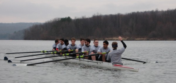 Here's the Brandeis Men's 8+ getting set to take on the field.